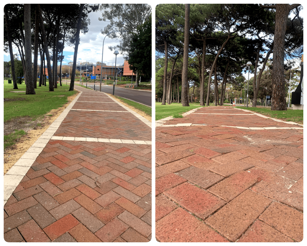At Curtin Uni, here in Aussie, there was a medium sized issue. The walkways are brick and the bricks had morphed into what could be considered brail for the jolly green giant. It was so bad in fact, that I would need to go very slow and be very cautious so that I wouldn’t hit a brick and fall forward. It’s almost happened a few times.