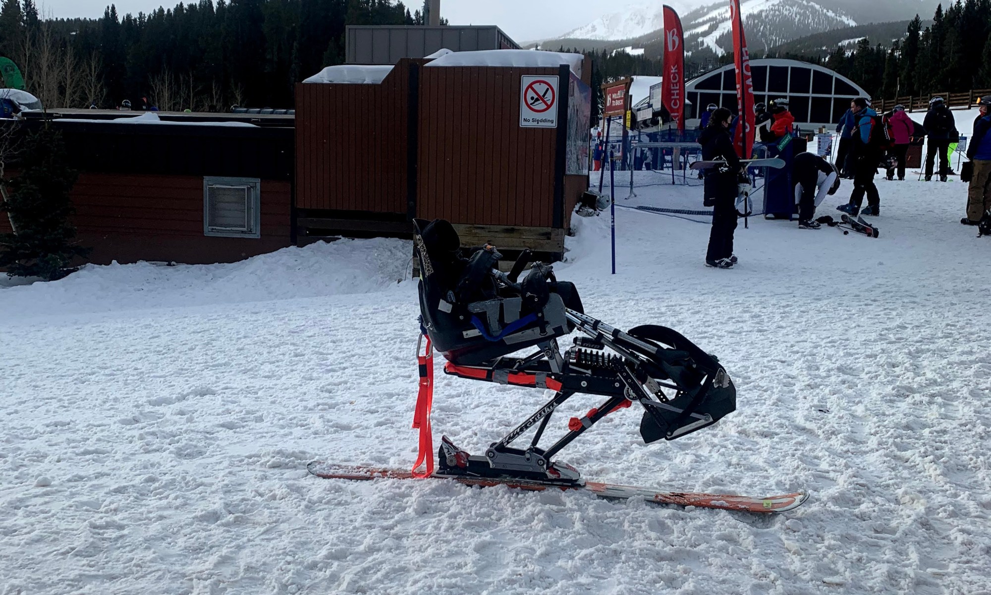 If you’re in a wheelchair, you’ll use a sit-ski. Sit-skis are expensive.